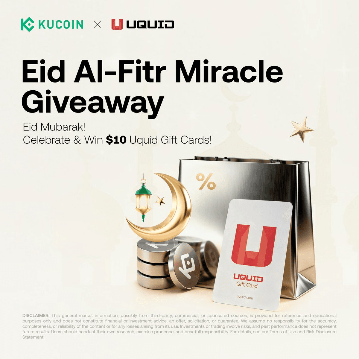 **Uquid and KuCoin Pay launch Eid al-Fitr promotion** Web3 shopping platform Uquid has partnered with KuCoin Pay to offer discounts during the Eid al-Fitr celebration period. **Promotion details:** - 1% discount (maximum $5) when using KuCoin Pay - Promo code: EAFKUCOIN26 - Valid through March 23, 2026 - Available at [shop.uquid.com](http://shop.uquid.com) and [uquid.com](http://uquid.com) **Additional incentive:** Three shoppers will receive $10 Uquid Gift Cards through a random drawing of submitted orders. The collaboration enables crypto payments for shopping during the Islamic holiday period.