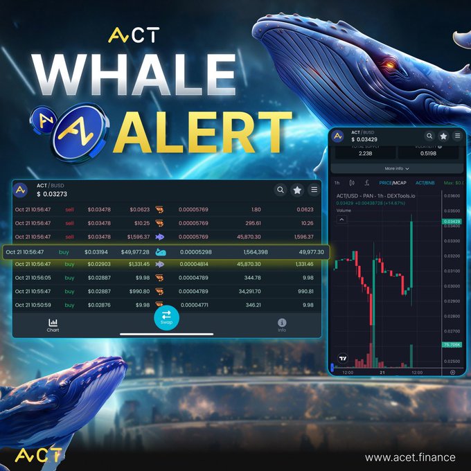 🚨ACT Whale Alert 🐳 Whale Wallet bought ACT, total 50,000 USDT at price of $0.03194, received 1,564,398 ACT Transaction : October 21, 2024, 03:56 AM UTC TX Hash: bscscan.com/tx/0x125072525… #ACT #Acet #ACTWarriors #iHoldACT #ACTisThePeople #iDeologyCoin #ACTWhaleAlert