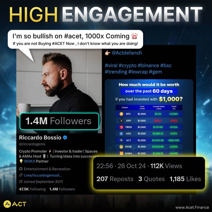 Crypto Architect [Giveaway], a well-known crypto influencer with 601,900 followers on X, gave a massive shout-out to ACT: “Insane pump coming for ACET. Imagine missing this out. BUY NOW.” His post has already reached 73,000 views, and 457 reposts. So, are you holding ACT yet?