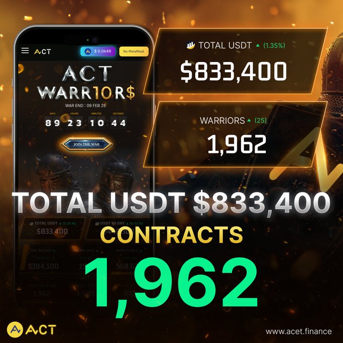 The ACT Warriors army continues to stay active! Over the past 24 hours, they’ve achieved the following outcomes: ✅ Contracts increased by 19, reaching a total of 3,950. 💪 ✅ Total accumulated USDT : Over $1,000,000 💰 Let’s keep a close watch on their global expansion and
