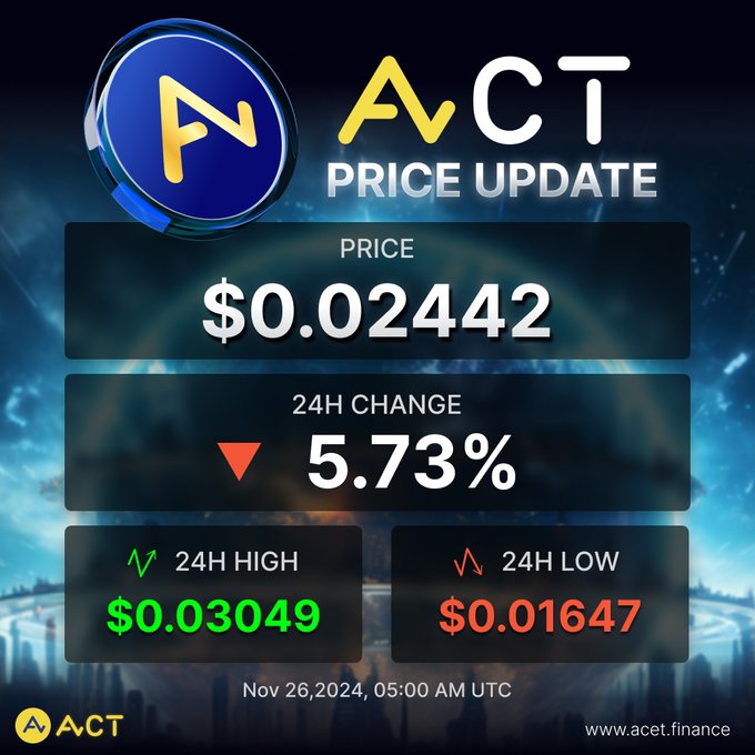 You can now track the ACT Warriors’ Smart Contracts in real-time through acet.finance. Check ACT’s latest price: acet.finance Stay updated on: X: x.com/ACTDeFansFi Telegram: t.me/ACTAcet #ACT #Acet #ACTWarriors #iHoldACT #ACTisThePeople