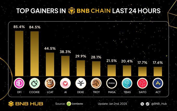 ACT in Top Gainers on previous day #BNBChain 🚀 Update : 02/01/2025 Source : x.com/bnb_hub/status… Check the latest ACT price at: acet.finance Stay updated by following us on: X: x.com/ACTDeFansFi Telegram: t.me/ACTAcet #ACT #Acet #ACTWarriors