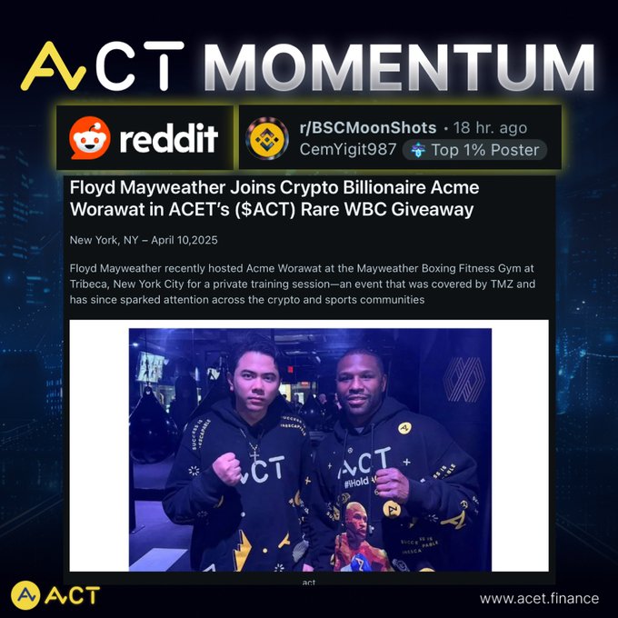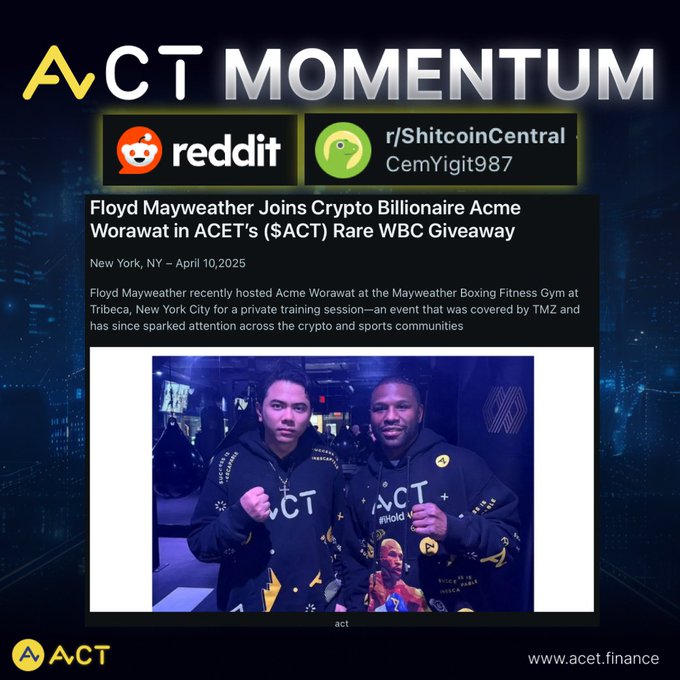 r/CryptoExchange on Reddit highlights the launch of “Why Floyd Trusts in ACET?” 🥊 This event could spark a massive global business breakthrough! 🌍✨ Source: reddit.com/r/CryptoExchan… Check the latest price of $ACT at: acet.finance Stay up-to-date by following us