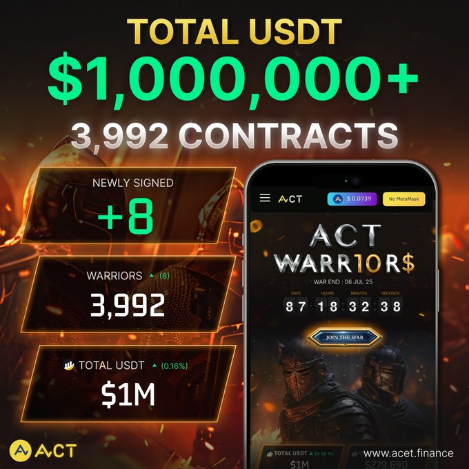 ⚔️The $ACT Warriors have remained active on the battlefield over the past 24 hours, with new recruits steadily joining the ranks—fortifying their community and boosting their strength. 💥🔥 ✅ Contracts increased by 2, reaching a total of 4,130 💪 ✅ Total accumulated USDT: Over