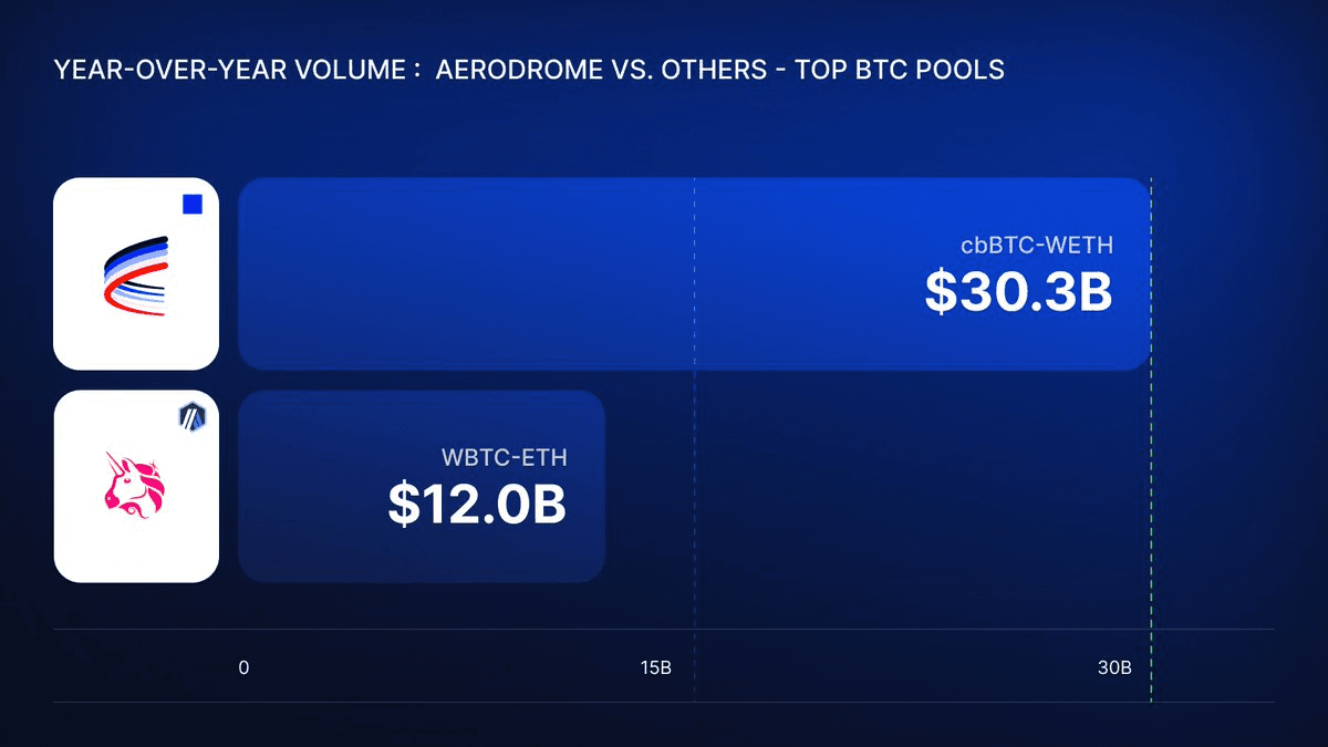 Aerodrome's Bitcoin Pool Dominates EVM with $30B Volume