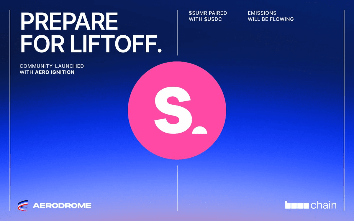 **Summer Finance** is launching its **$SUMR governance token**, going live in two hours. **Key Details:** - veAERO voters can claim $SUMR tokens and be first to deposit and stake - Stakers will earn $AERO emissions - Token enables holders to share in protocol growth through staking rewards and revenue distribution - veAERO voters can direct emissions at epoch flip **Important Note:** Markets may experience volatility as this novel approach stabilizes over time. The launch represents a new governance mechanism within the Aerodrome ecosystem, rewarding existing veAERO participants with early access.