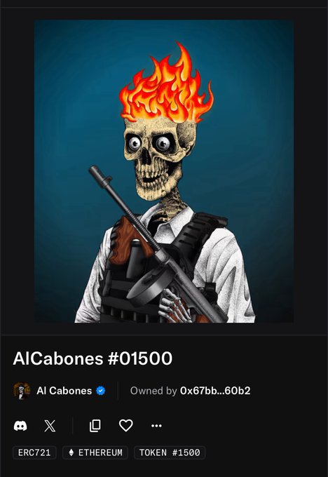 The Al Cabones NFT project is advertising a gangster for hire from their skeleton mobster collection.