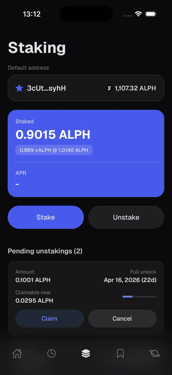 The Alephium front-end development team has unveiled a preview of the upcoming mobile $ALPH staking feature. This new functionality aims to improve accessibility by allowing users to manage their staking positions directly through the mobile wallet interface, eliminating the need to access Powfi separately. **Key Features:** - Direct staking management from mobile wallet - Simplified user experience - No need to open separate Powfi interface This development follows recent updates to the staking infrastructure, including the deployment of revamped staking pages with new $ALPH liquid staking capabilities. The team has been focusing on UX improvements and preparing for the rollout of enhanced staking features. The mobile staking feature represents a step toward making cryptocurrency staking more user-friendly and accessible for everyday users.