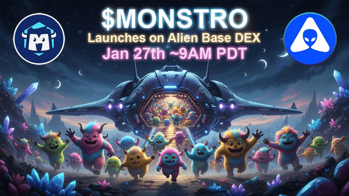 Alien Base announces the listing of **$MONSTRO** token, launching January 27 at approximately 9am PST. Key features of the launch: - Exclusive debut on Alien Base platform - **Dual reward system** offering both MONSTRO and ALB tokens - High-APR farming opportunities available from day one - Immediate trading access upon launch The platform previously demonstrated its capabilities with the rapid listing of BasedMonsta's $MONSTA token, which began trading within hours of launch. Alien Base's Orders system, powered by Carbon DeFi, provides traders with zero slippage, sandwich attack immunity, and access to all MONSTA liquidity on Base. The MONSTRO listing represents another exclusive token launch on the Base-native decentralized exchange.