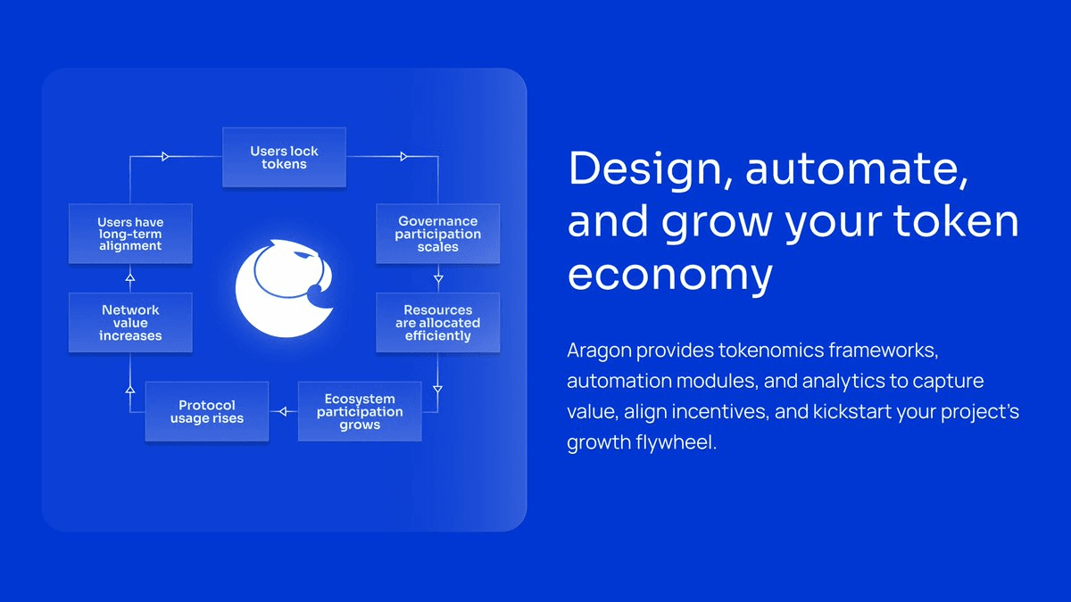 Aragon has introduced a **tokenomics stack** designed to help organizations convert token emissions and treasury spending into sustainable value. The framework combines automation tools with strategic guidance to optimize token economics. Key features include: - Integration of ve (vote-escrowed) tokens and gauge systems - Network incentive alignment mechanisms - Value accrual toolkit for long-term sustainability The platform aims to address common challenges in token design by providing practical primitives for organizations building onchain. Aragon's approach focuses on transforming typical token distribution models into systems that create lasting value rather than short-term incentives. Learn more about the framework at [Aragon's tokenomics page](https://www.aragon.org/tokenomics)