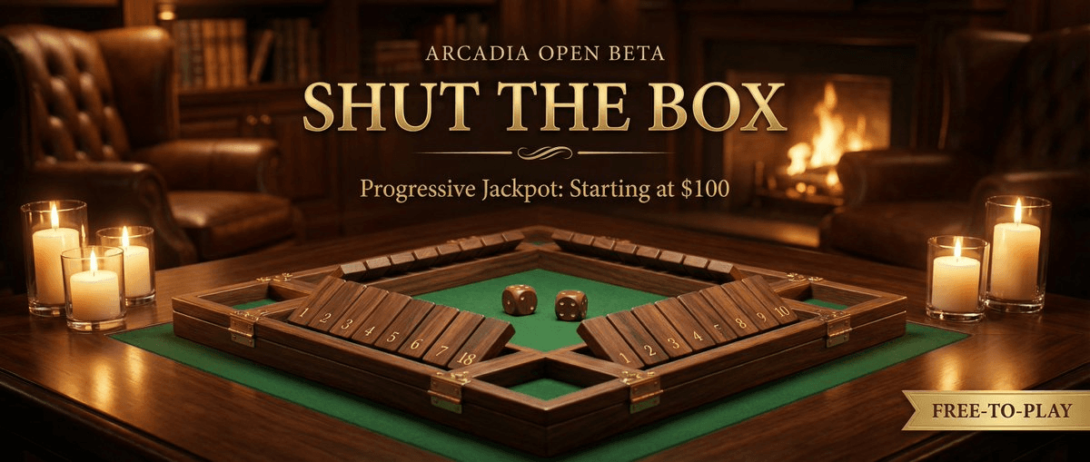 Arcadia Games has introduced a new progressive jackpot feature for their Shut the Box game. **Key Details:** - Starting jackpot: $100 - Every new signup receives 1 free attempt - Progressive format means the prize pool increases over time The launch comes as the platform's Yahtzee leaderboard sees increased activity. Players can access the new jackpot game at [arcadiagames.io/jackpots/shut-the-box](https://arcadiagames.io/jackpots/shut-the-box). This addition expands Arcadia Games' retro gaming lineup, which already includes Chess, Checkers, Tic Tac Toe, and Battleships in beta, with plans for Blackjack, Ludo, Backgammon, and Connect4.