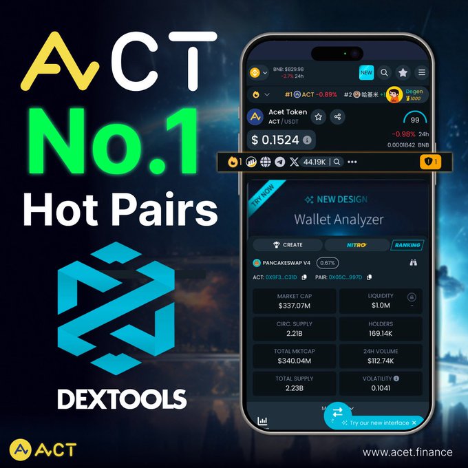 🔥 $ACT is on fire — soaring to the #1 spot on DEXTools’ Hot Pairs today! Ref. 22/11/2025 06:49 AM UTC Source: dextools.io/app/en/bnb/pai… Stay updated by following us on: X: x.com/ACTDeFansFi Telegram: t.me/ACTAcet WhatsApp: whatsapp.com/channel/0029Vb… $ACT #ACT