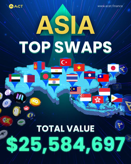 Asia leads global $ACT token swapping activity with $25.58 million in total swap value through the "Swap to ACET" campaign.