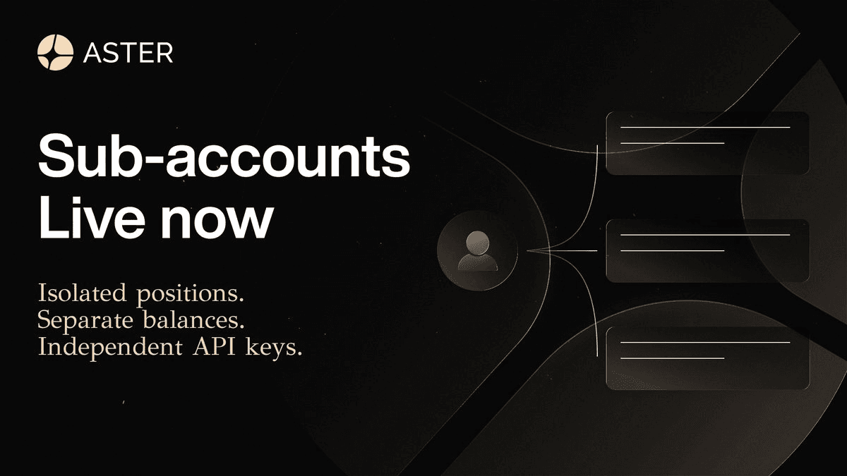 Aster has launched sub-accounts for VIP 2+ and market maker accounts. **Key Features:** - Up to 15 sub-accounts per master account - Isolated positions, balances, and API keys for each sub-account - Instant, zero-fee transfers between master and sub-accounts - Each sub-account receives its own wallet address and private key - 10 API keys available per sub-account (V3) - VIP tier benefits shared across the entire account group The feature provides traders with better account organization and risk management through isolated trading environments while maintaining seamless fund movement across accounts.