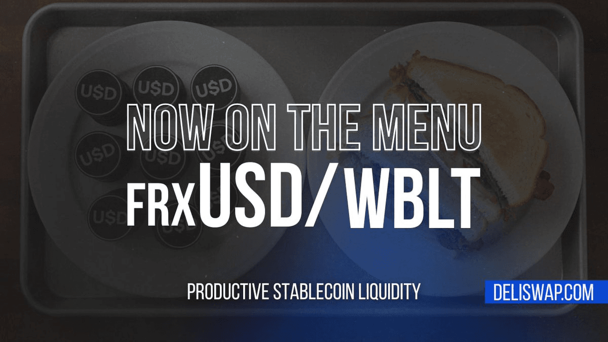 **New incentives launched** for the frxUSD/wBLT liquidity pool on Deli Swap by BMX DeFi. **Key benefits:** - frxUSD's revenue-sharing model offers better capital efficiency than USDC/USDT - Perfect pairing with wBLT's productive liquidity vault - Now live on Base network **Why it matters:** This combination leverages frxUSD's Treasury-backed rewards system with wBLT's yield-generating capabilities, creating a more attractive option for liquidity providers. [Start providing liquidity](https://www.deliswap.com/#/explore/pools/base/0x3779354f8c0065d70f35115508d040008ccf2e6a246d80c4db994e4684e2f72a?chain=base&from=0x4E74D4Db6c0726ccded4656d0BCE448876BB4C7A&tab=swap)