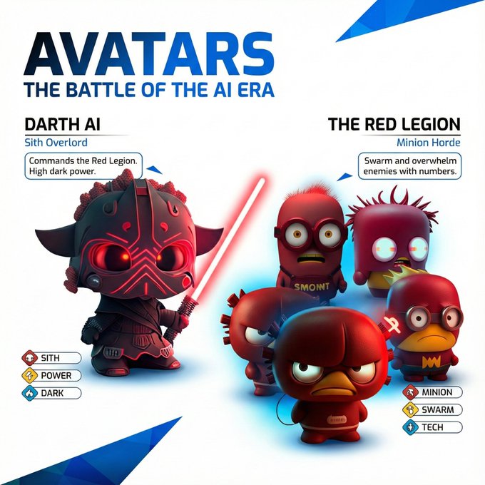 ⚔️ AVATARS: The Battle of the AI Era is coming… Darth AI has awakened. The Red Legion is marching. And the universe is about to change forever. avatarsai.net Choose your side. Build your Avatar. Prepare for the war of intelligence. Are you ready for the AI uprising?