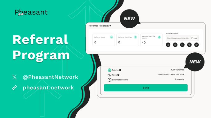 👥The Pheasant Referral Program has launched! Invite friends, grow the flock, and stack Points together 🐦🤝 pheasant.network/points