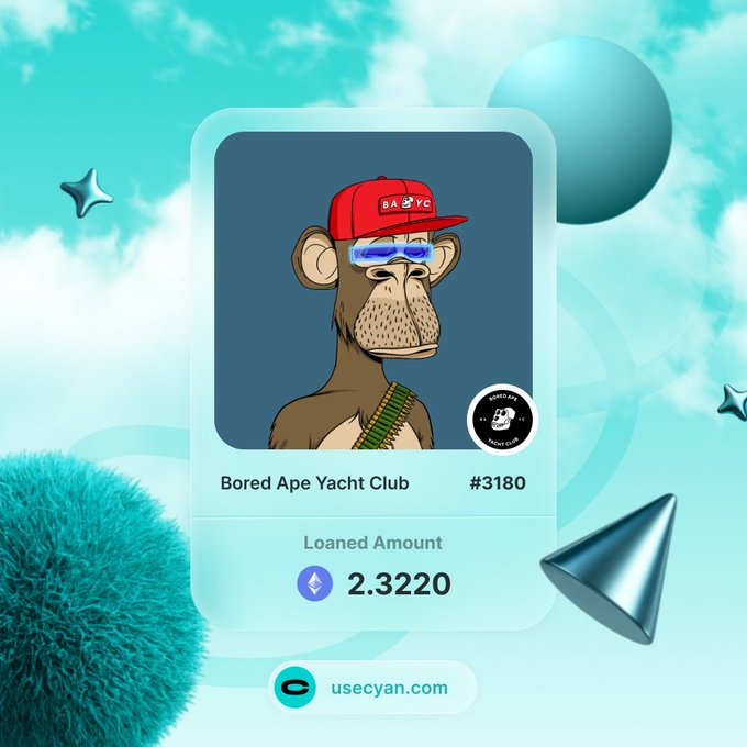 Top Loan of the Week on Cyan! @BoredApeYC #3180 was used as collateral to take out a loan of 螢2.3220, unlocking capital efficiency instead of letting the NFT sit idle! Just @usecyan