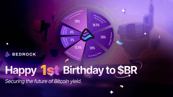 📊 Entering Year 2 with Unprecedented Scale In 12 months, Bedrock cemented itself as top-tier BTCFi infrastructure: 🟣 6,200 BTC restaked at peak 🟣 19 chains & 60+ DeFi integrations 🟣 $BR live on @binance, @Bybit_Official, @kucoincom, @bitget & @Gate Our foundation is rock