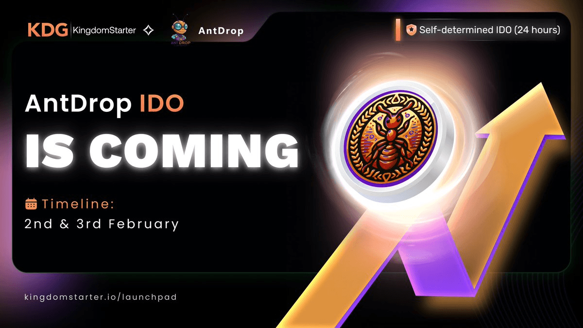 The **AntDrop IDO** on KingdomStarter has been **postponed for the second time**. Originally scheduled for February 2-3, then rescheduled to February 5-6, the launch is now delayed indefinitely. **Key Details:** - New IDO date: **To be announced** - Reason: Updates to the project's plan and additional preparations - Original IDO price: $0.01 per ANT token - Total raise target: $200,000 - Vesting: 10% at token generation event, then 6-month vesting The team states they are making preparations to ensure a stronger and smoother launch. The community will be notified once a new timeline is confirmed.