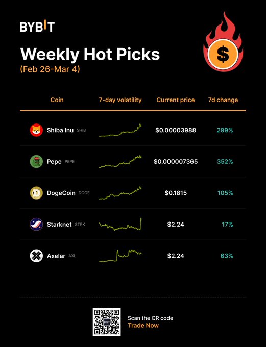 BTC is about to reach a new high. Are you ready to welcome its arrival? We have selected the hot-coins of the past week for your reference. Scan the QR code or click the link to start trading! bybit.onelink.me/EhY6/d27oyizp #Bybit #BybitHotPicks