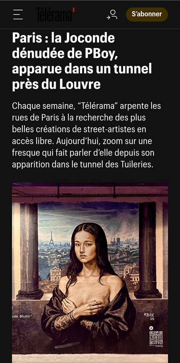French cultural magazine **Télérama** has published coverage of **#TheNakedMonaLisa** project by street artist Pascal Boyart. - The feature marks mainstream media recognition for Boyart's blockchain-integrated artwork - Télérama is a respected French publication covering arts and culture - The coverage also highlighted French Minimalists in the crypto art space Boyart, known for his ultra-realistic frescoes across Paris, has been bridging traditional street art with web3 technology. His work on The Naked Mona Lisa represents a convergence of classical art references and digital innovation.