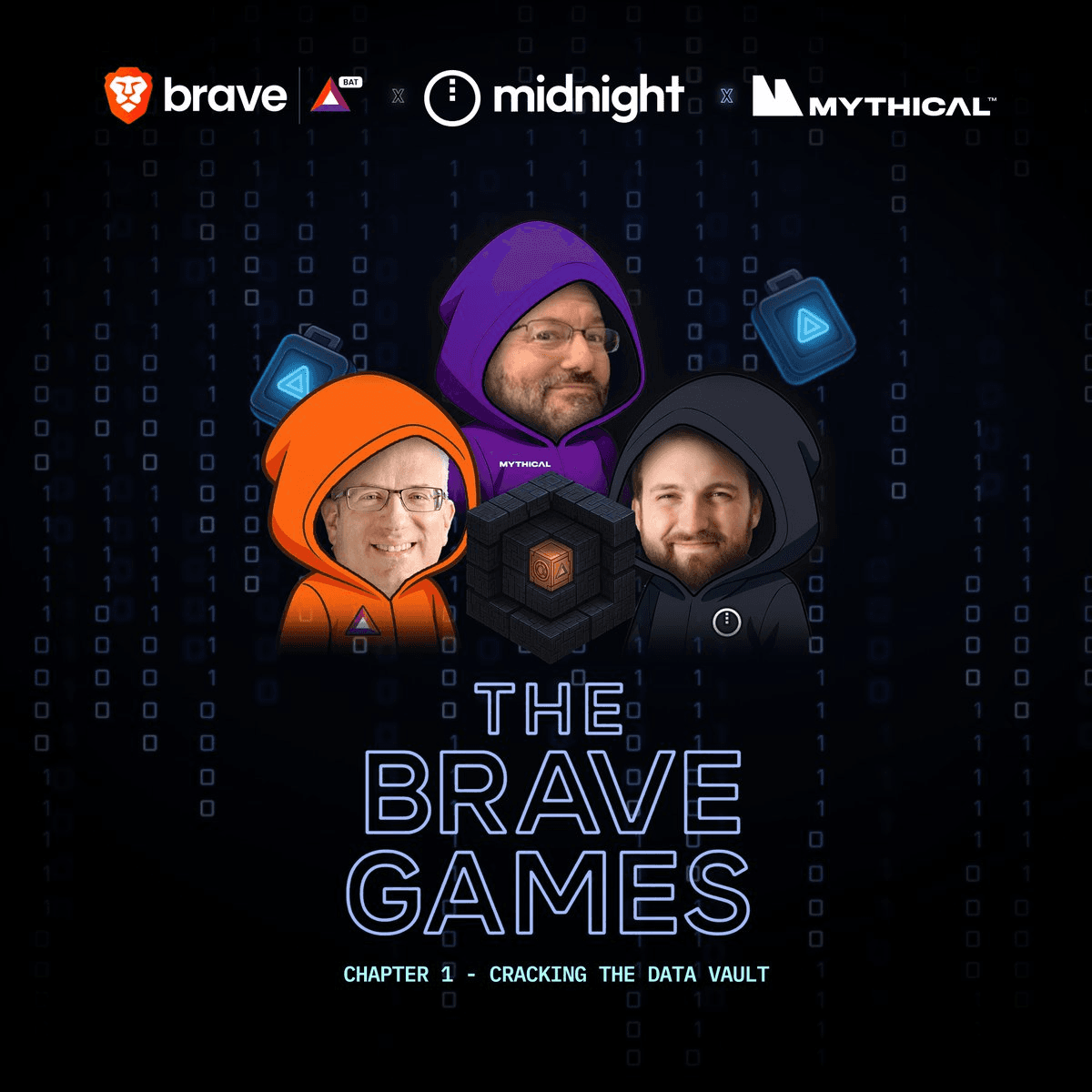 **Brave Games**, a reality-style vault heist game, launches in February 2026 as a collaboration between Brave, Midnight Network, and Mythical Games. **Key Details:** - Built by Fanon Club - Three-faction competition: Brave (馃), Midnight Network (馃寵), and Mythical Games (馃幃) - Multi-round missions involving encrypted clues, alliances, betrayals, and strategic gameplay - Described as part heist, part mind game, part game show **Upcoming Event:** January 27 discussion featuring Brendan Eich (Brave), Charles Hoskinson (Midnight Network), and John Linden (Mythical Games) to discuss the partnership. Player registration and additional details coming soon at [thebravegames.com](http://thebravegames.com)