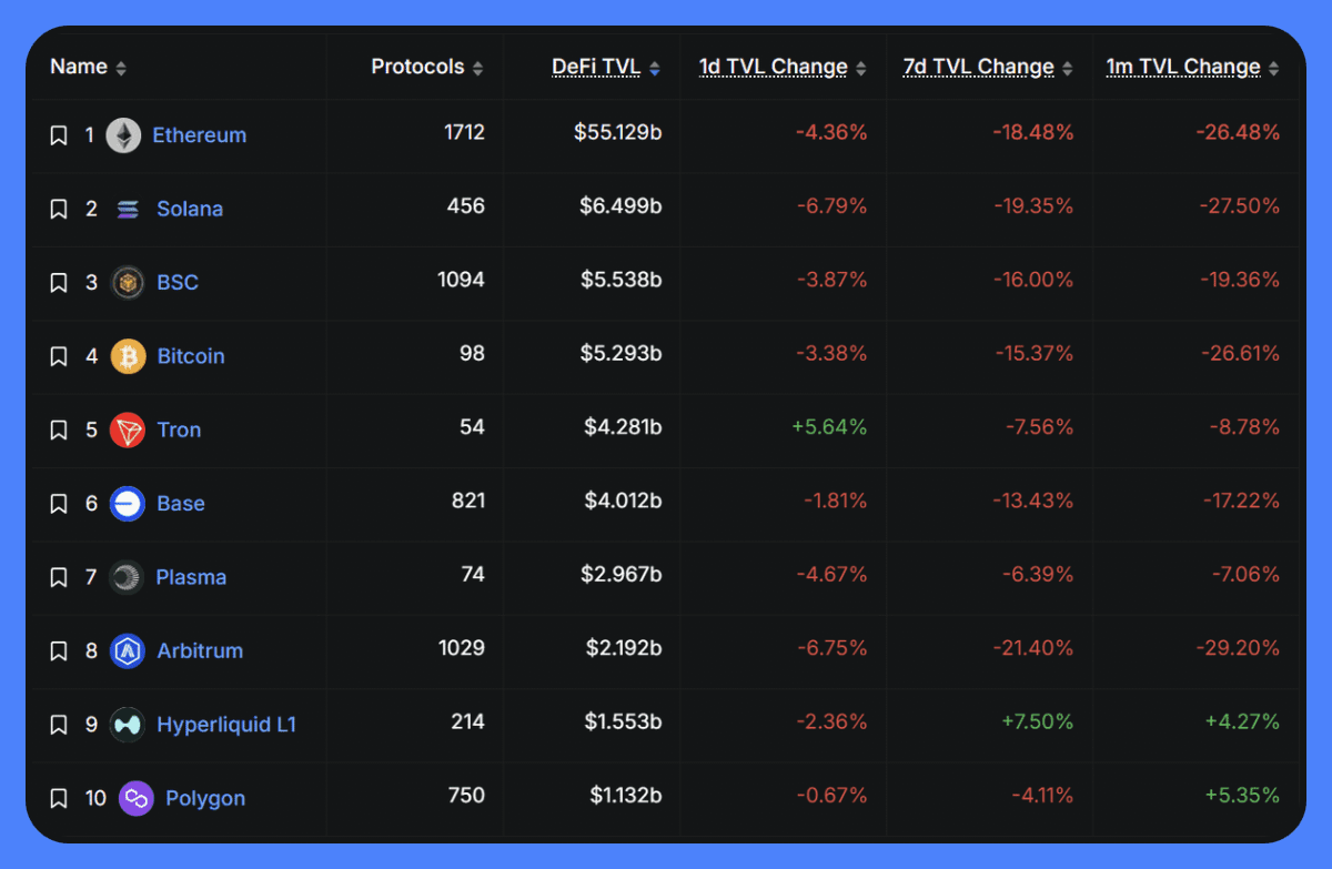 Polygon and Hyperliquid Buck Trend as Major Chains See TVL Decline