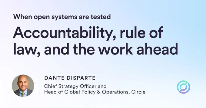 - Circle positions trust in digital assets as dependent on security, accountability, and rule of law