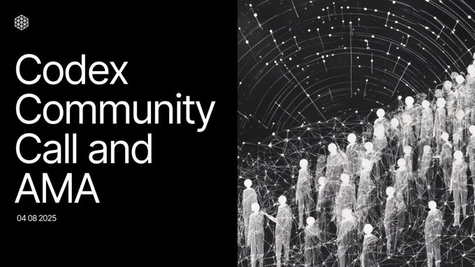 Join the next Codex Community Call. We'll be talking about @ThirdStorage, a new pinning service built on Codex, and answering questions from the community. Live here on X broadcasts. Mon 4 Aug | 15:00 UTC
