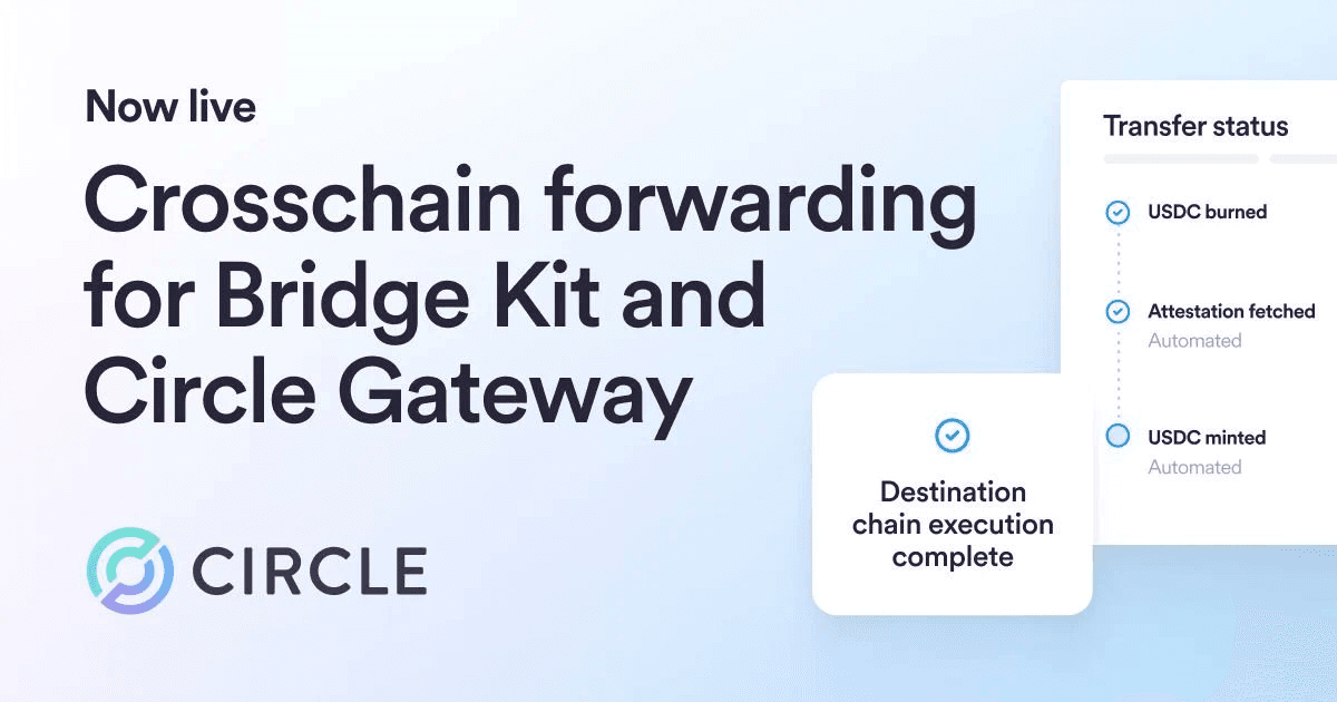 Circle has launched its crosschain forwarding service for Bridge Kit and Gateway, expanding beyond the CCTP-only version released in January. **Key Features:** - Automates destination-chain execution for crosschain transfers - Reduces transfer times and operational costs - Lowers third-party risk through Circle's managed service **Supported Networks:** The service works with routes to Arbitrum, Avalanche, Base, Ethereum, HyperEVM, Ink, Linea, Monad, Optimism, Polygon, Sei, Sonic, Unichain, and World Chain. Additional blockchains are expected. **Developer Resources:** - [Bridge Kit forwarding tutorial](http://developers.circle.com/bridge-kit/tutorials/use-forwarding-service) - [Gateway forwarding reference](http://developers.circle.com/gateway/references/forwarding-service) This builds on Circle's January launch of forwarding for CCTP, extending automation capabilities across their broader product suite.