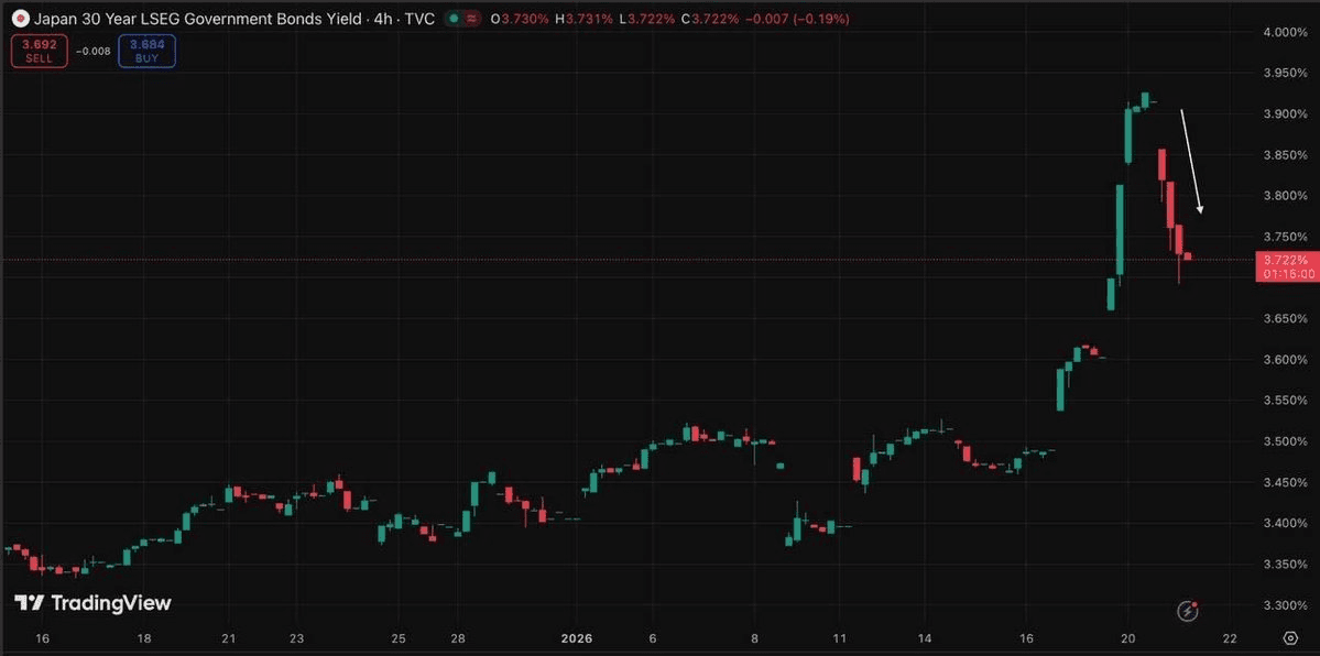 **Japan's 30-year government bond yield jumped to 3.9%** and remains elevated near 3.7%, signaling a shift in global liquidity conditions. **Key implications:** - The era of cheap yen funding appears to be ending - Tighter liquidity conditions ahead for global markets - Bitcoin and crypto assets face increased exposure to macro shocks - Digital assets showing heightened sensitivity to bond yield movements This development marks a notable change in the funding environment that has supported risk assets in recent years.
