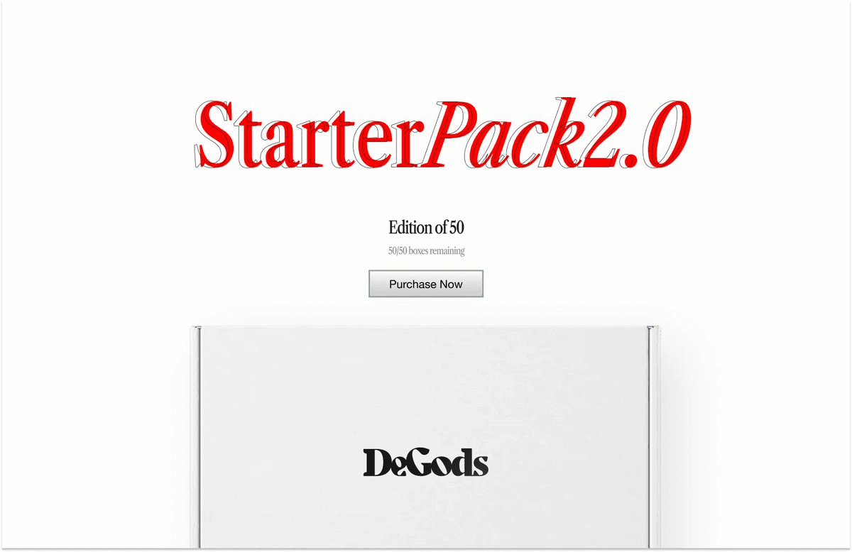 DeGods has released **Starter Pack 2.0**, a highly limited collection featuring only 50 uniquely numbered boxes available at [degods.com/starterpack](https://degods.com/starterpack). **Key Details:** - Each box is individually numbered from 1-50 - Extremely limited availability - Available now on a first-come, first-served basis This marks the second iteration of DeGods' starter pack concept, following their initial launch in 2024. The numbered format adds collectibility and scarcity to the offering. Interested collectors should act quickly given the limited supply of just 50 units.