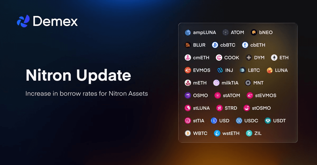 Nitron is updating its borrow rate structure to better respond to market conditions. The platform is consolidating rates into a single amplified strategy that can adjust more quickly during utilization spikes. **Key Changes:** - Borrow rates will increase up to 10% across 30+ assets - New unified strategy replaces previous rate models - Designed to respond faster during volatile market conditions **Affected Assets:** The update impacts major tokens including ETH, WBTC, ATOM, LUNA, stablecoins (USDC, USDT, USD), and various liquid staking derivatives (wstETH, stATOM, stLUNA, stOSMO, stTIA, stEVMOS). This follows a similar trend in DeFi lending protocols adjusting rate mechanisms for better capital efficiency.
