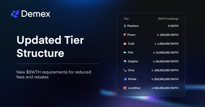 ✨ Updated Tier Structure✨ The new Demex Tier requirements will take effect on 22 July. Our goal remains the same: to deliver an unparalleled trading experience while maximizing value for $SWTH stakers. More details ↓