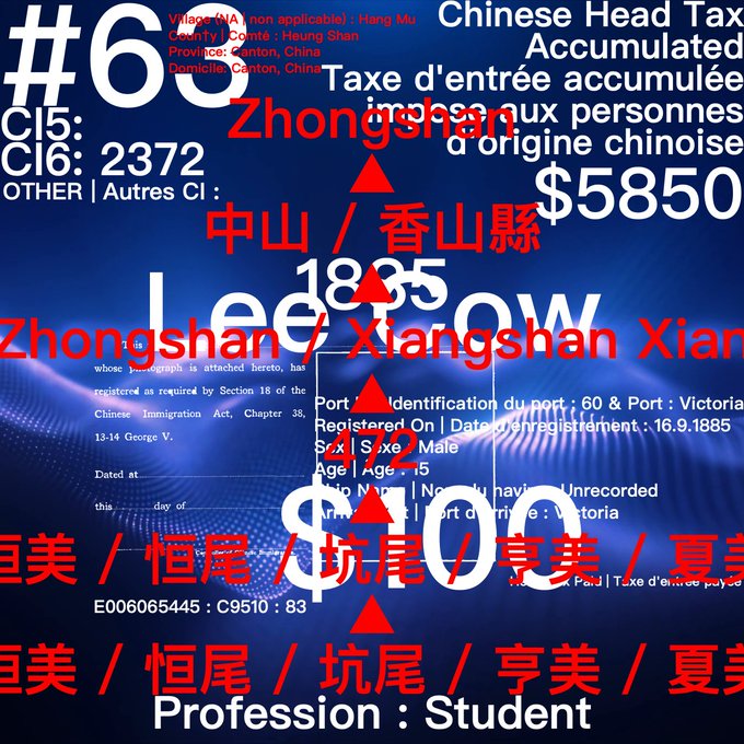 ๐งต ๐๐ค๐ฉ๐ฐ๐ฆ๐ด ๐ฐ๐ง ๐๐ช๐ญ๐ฆ๐ฏ๐ค๐ฆ & ๐๐ถ๐ณ๐ท๐ฆ๐ช๐ญ๐ญ๐ข๐ฏ๐ค๐ฆ, a generative motion graphics artwork, draws on the Register of Chinese Immigrants to Canada (1886โ1949). cc @CanadaChina