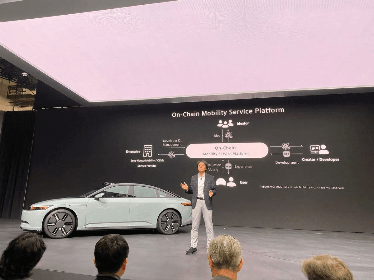 Sony Honda revealed onchain mobility plans at CES, joining a growing trend in the automotive industry. **Key Development:** - Sony Honda announced blockchain integration for their mobility platform at CES - Follows Toyota's 2025 onchain whitepaper release - DIMO Japan positioned to support Asia's shift toward connected vehicle technology **Industry Context:** Major automakers are increasingly exploring blockchain solutions for vehicle data and connectivity. Toyota's whitepaper laid groundwork for onchain automotive applications, with Sony Honda now following suit. The move signals broader industry acceptance of decentralized vehicle platforms in Asia's automotive market.