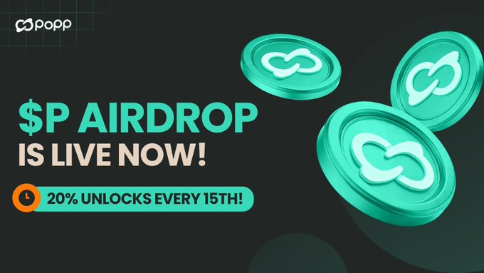 📢 $P Airdrop Update Phase 2 unlocks today at 2:00 PM (SGT) — 20% will be released! 20% unlocks every 15th of the month! 👉 airdrop.popp.club/en ------------------------- 🎯 XP is LIVE! — the $P staking & opinion market you’ve been waiting for! 👉 xp.popp.club