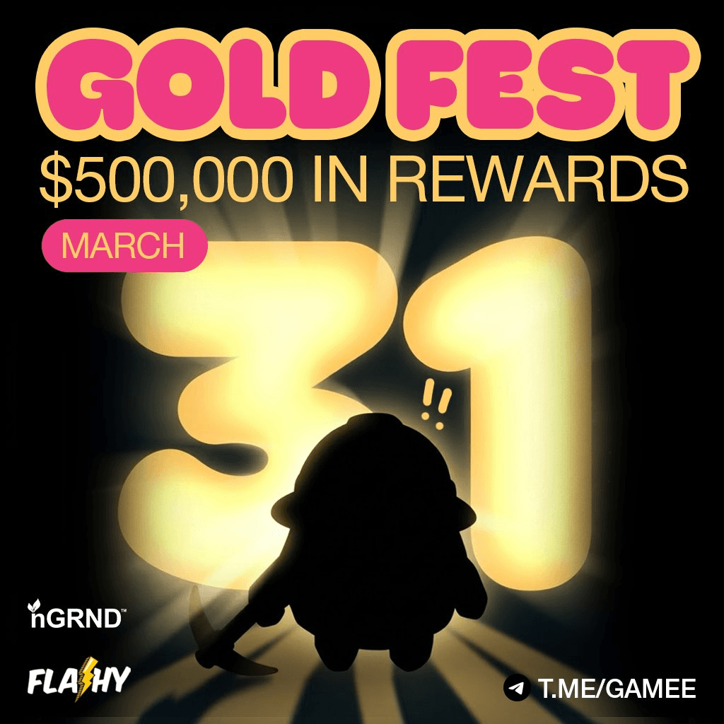 **GAMEE's Gold Fest launches March 31st** on Telegram, featuring the platform's largest-ever reward pool of $500,000 in gold-backed tokens. **Key Details:** - Players compete for digital gold rewards through gaming - All participants start from zero - Accessible via [GAMEE's Telegram app](http://t.me/gamee) The event represents Telegram's biggest prize pool to date, with rewards distributed in gold-backed tokens that players can earn by participating in games within the GAMEE platform.