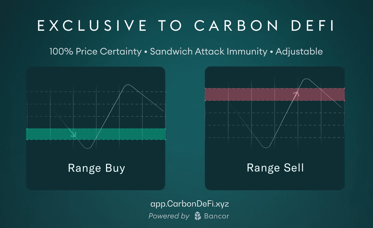 **CarbonDeFi has launched Range Orders**, a trading feature that allows users to execute buy or sell orders across a defined price range rather than at a single price point. **Key features:** - Trades execute progressively as the market moves through the specified range - Eliminates the need for precise market timing - Users define both the starting and ending price points - Works with any two standard ERC-20 tokens The platform's architecture uses **two independent curves** - one for buying and one for selling - allowing strategies to follow exact user-defined parameters. Each curve trades in only one direction. Range Orders complement CarbonDeFi's existing features including concentrated liquidity strategies with automatic compounding and a built-in solver system that accesses liquidity from major DEXs. Users can create Range Orders at [app.carbondefi.xyz](http://app.carbondefi.xyz)