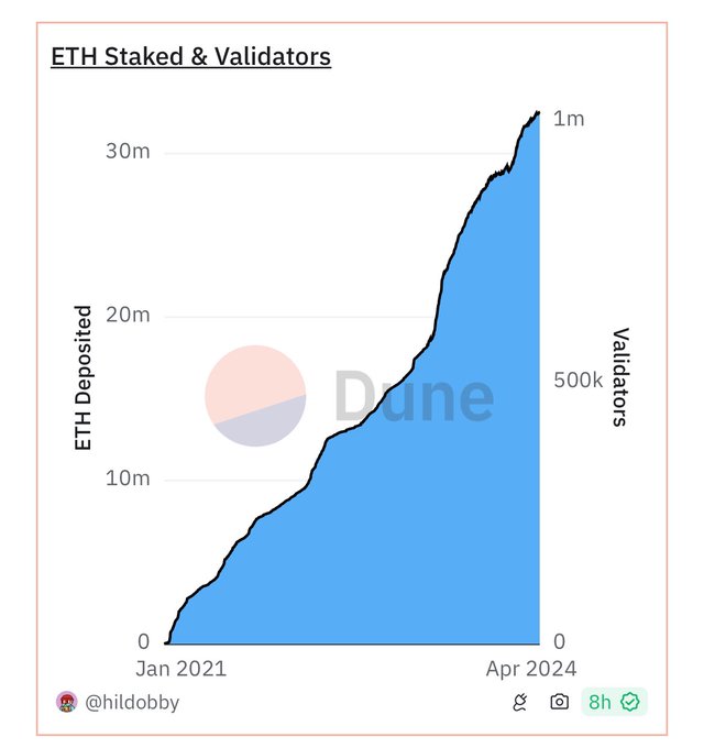 According to reports, the Ethereum network has reached a significant milestone with 1 million validators actively participating in the staking process. This achievement highlights the growing adoption and decentralization of the network, as more individuals and entities contribute to securing and maintaining the blockchain. The increasing number of validators strengthens the network's resilience and reinforces its position as a leading blockchain platform.