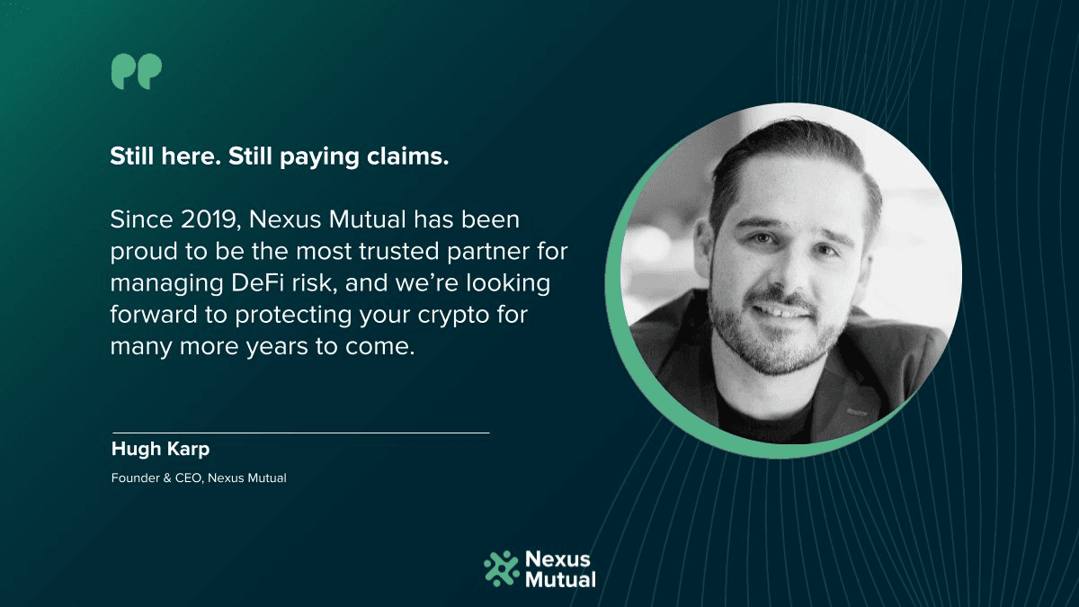 Nexus Mutual has published **The Nexus Review**, their Q4 and 2025 wrap-up report covering DeFi risk management and claims processing. The report, introduced by Hugh Karp, emphasizes the protocol's consistent approach to onchain risk. Key areas covered include: - DeFi risk assessment and management - Claims processing and payouts - Vault operations - Institutional adoption trends The full report is available at [docs.nexusmutual.io](https://docs.nexusmutual.io/bookshelf/NM_Q4_REPORT.pdf)