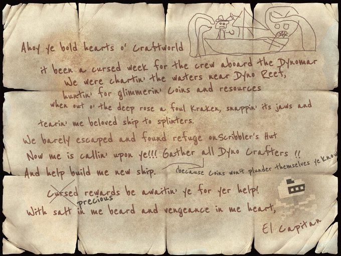 🌊 Something is still moving beyond the shores of Craft World… 🌊 El Capitan is save on Scribbler's Hut, the Dynos are preparing for the big community masterpiece launch tomorrow, but the ocean isn’t calm yet. 👀 The waves haven’t stopped, and it feels like the sea is still