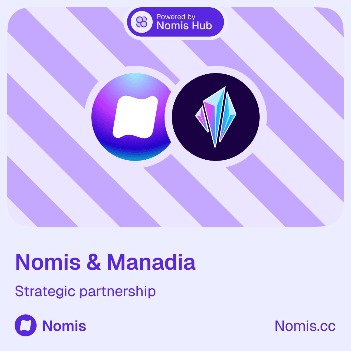 **Nomis has announced a strategic partnership with Manadia**, an infrastructure layer focused on verifiable data settlement. **Key Details:** - Manadia ensures data integrity and secure settlement across on-chain and off-chain systems - The project is backed by OKX Ventures - Integration will occur through Nomis Hub - Both communities can expect collaborative benefits The partnership aims to enhance onchain reputation verification by combining Nomis's reputation scoring with Manadia's data settlement infrastructure.
