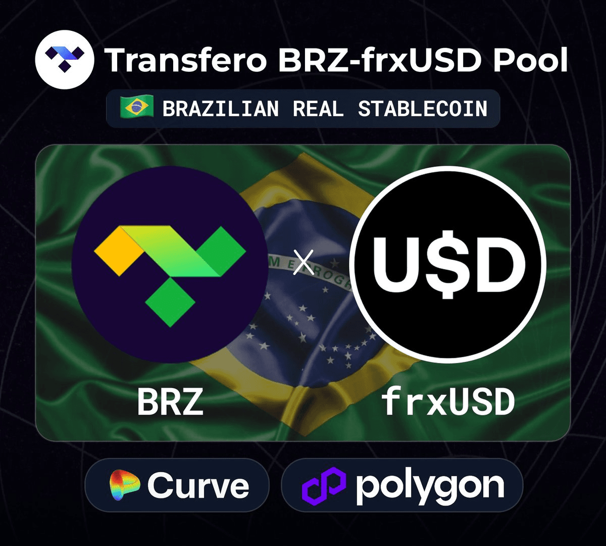 **BRZ**, the Brazilian real-backed stablecoin from Transfero Group, has launched a new liquidity pool paired with frxUSD on [Curve Finance](https://curve.fi) on the Polygon network. **Key Details:** - BRZ maintains over $300M in total value locked (TVL) - Ranks as the 26th-largest stablecoin according to [DeFiLlama](https://defillama.com) - Fully backed by Brazilian real reserves - New pairing enables efficient swaps between BRZ and frxUSD This integration expands liquidity options for Brazilian real exposure in DeFi while connecting to Frax's stablecoin ecosystem on Polygon's low-fee network.