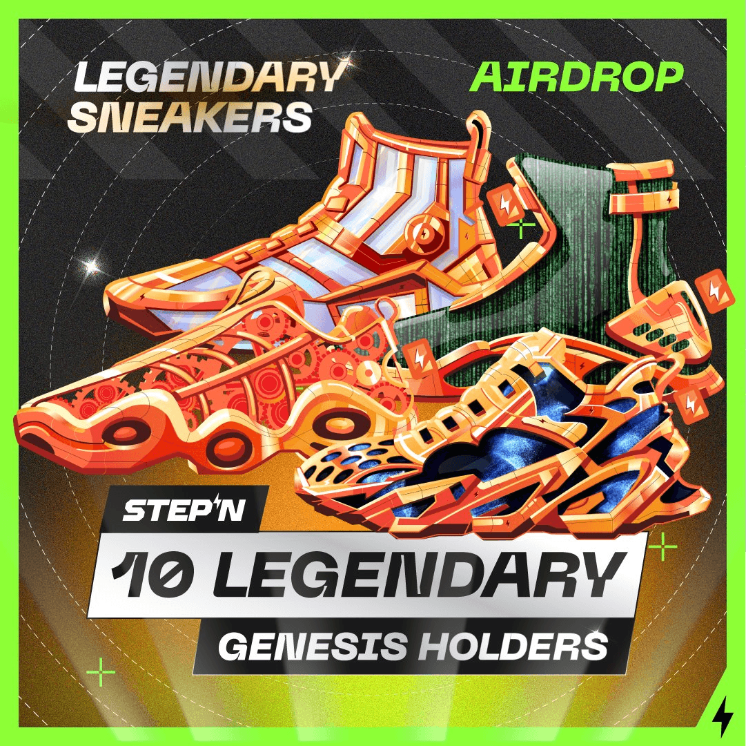 STEPN completed its final legendary airdrop on February 4, distributing soulbound Legendary Sneakers to 10 randomly selected Genesis holders on the Solana Realm. **Eligibility Requirements:** - One entry per account - Genesis Sneaker in inventory (not listed) - Active holders who spent 2 Energy within one month before snapshot - Snapshot taken February 4, 6 AM UTC This follows previous airdrops, including Legendary Trainers awarded to the top 10 all-time leaderboard players and rewards from the completed Season 1 Marathon Challenge (#STEPNathon). Winners received their exclusive sneakers directly in their STEPN inventory.