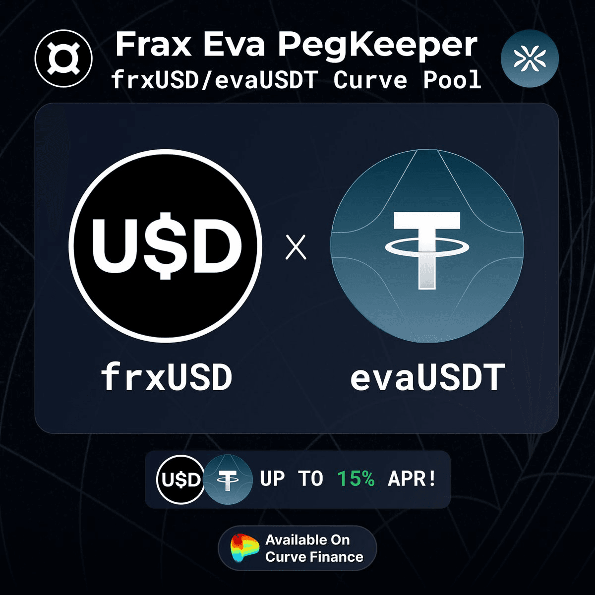 Eva Markets has selected **frxUSD** as the default stablecoin pairing for its evaUSDT product. **Key Details:** - evaUSDT generates yield through an isolated lending strategy involving Wintermute loans on Wildcat Finance - The pairing is available on Curve Finance: [Trade on Curve](https://www.curve.finance/dex/ethereum/pools/0x552827613fea5eada3871f83b2d407d50cb04116/deposit) - This adds to the growing list of 20+ protocols choosing frxUSD for their stablecoin pairs **Recent Growth:** - frxUSD in PegKeeper pools recently surpassed $20M - Total PegKeeper TVL now exceeds $50M - PegKeeper strategies are diversifying beyond their previous crvUSD dominance