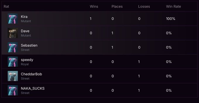 Itโs official! The first Rat Race onchain has just finished with the top 3 taking home the cheese ($MCADE) ๐ง๐ ~$20 ๐๐ฅ Kira ~$12 ๐๐ฅ Dave ~$8 ๐๐ฅ Sebastian One for the @Base Rat Racing Record Books ๐๐