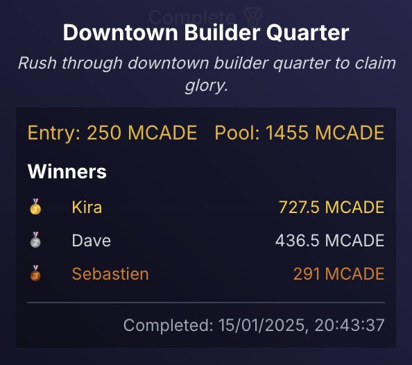 The first Rat Race concluded with winners taking home $20, $12, and $8 in $MCADE respectively.