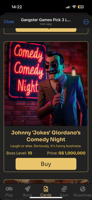 🎲 Think you’ve got luck on your side? Johnny "Jokes" Giordano’s comedy night is no joke—play and see if fortune favors your funny bone! Play now: t.me/gangster_games… #telegramminiapps #web3 #TON #cryptodailynews #Bitcoin #Bitcoin2024